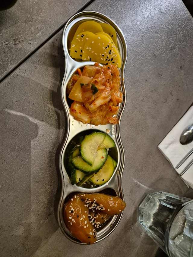 - Plateau coréen comme à la maison avec riz, 3 accompagnements bœuf* ou poulet épicé* ou porc épicé ou 6 morceaux de poulets frits * (épicés ou mayo à l'ail)