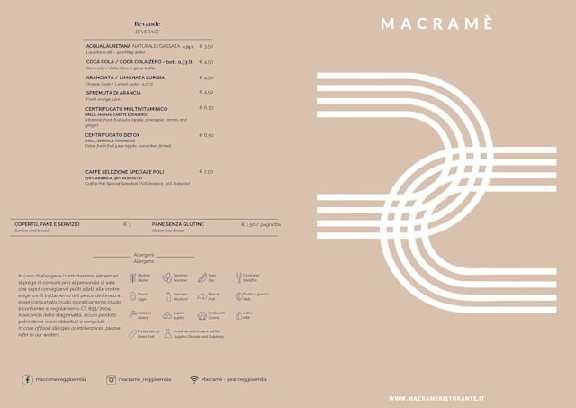 9/10Menu was a welcome change from all traditional Emilia-Romagna foods. Macrame' offers new twists on traditional and European dishes while still offering traditional Reggio-Emilia tastes. Loved the modern interior and art, lower lighting and just right table separation.