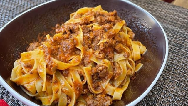 pasta all’uovo tirata a mano, al ragù di carne alla bolognese