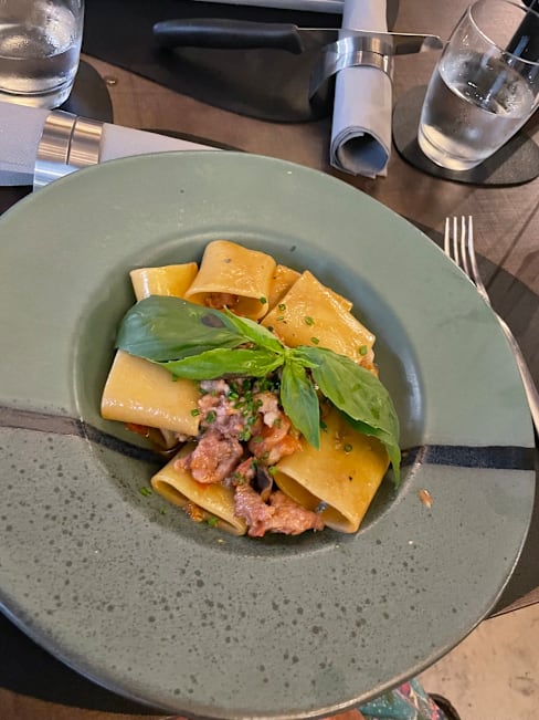 10/10This is a lovely restaurant with friendly efficient staff and amazing food. We shared antipasti as a starter which was excellent. My son had the spicy pizza which lived up to it's name but he loved it. I had the pistachio and bacon pasta and it was delicious. Out waitress recommended a perfect wine for us. We really enjoyed our meal and the atmosphere and will definitely be back