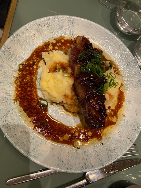 5.5/10I rarely write negative restaurant reviews but unfortunately my experience here warrants one. Let’s start with the food. We ordered the duck breast and the lamb. The lamb dish was OK, but about 3/4 of the way through I discovered what I can only assume was a piece of coil from a scour ball. The duck was horrendously overcooked & chewy, even though we asked for medium. Service was painfully slow. When I reported the lamb dish, the waiter took it away, but then neglected us for the next 20 minutes. It was only after repeated gesturing on our part that one of them came and asked whether we would like to get something else instead. I said I would like a dessert. A dessert menu was produced. Then we were ignored for 10 more minutes (again despite efforts to gain attention), at which point I gave up and asked for the bill. Credit where it’s due, they did waive the bill on the lamb and gave a discount on the duck. But the overall experience was still horrendous. Cannot recommend.