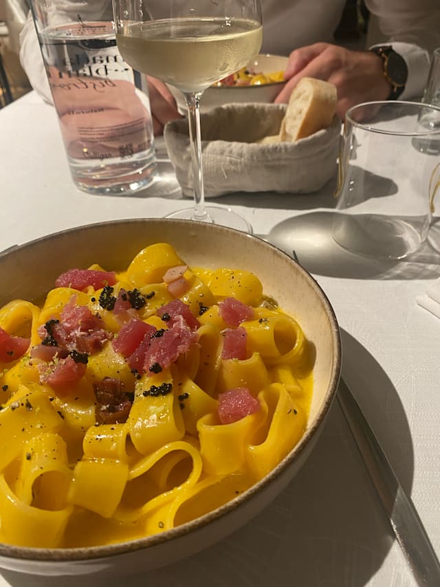 7.5/10I made a reservation yesterday (50% off) and I was very disappointed. The service was very slow, we arrived at 7:55 and our starters arrived at 8:40. The food was amazing, everything we ordered was delicious. The only miss was at the patanegra dish, some pieces were dry and chewy, but overall we loved everything. But as I said service was slow and indifferent, we ordered the tartare di tonno to share because we wanted to try it and we were full at this point. the waitress just put the plate in front of my husband, came back with one fork and left before we had the chance to tell her that we need two forks, the plate is to share. My husband had to get up and take a second fork himself, as if the restaurant is self service. My husband told her as we were leaving that the food was amazing but the service was awful. They should really improve their customer service, I definitely don’t recommend even though the food is amazing and wouldn’t visit again.