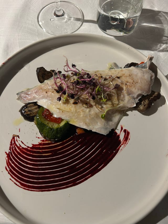 7.5/10Madame Blanc is a champagne bar,/wine bistrot, with also a small outdoor dining area, right in front of one of the most beautiful Romanic churches in Italy, Verona's San Zeno. While the setting is neat and clean but rather basic and unassuming, this restaurant offers a limited but very interesting menu, mostly fish and seafood based. The dishes are well cooked and some of the ingredients and combinations attractive. The service is kind and efficient and, thanks to The Fork discount, fairly priced.