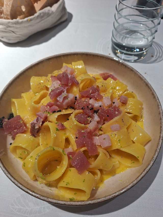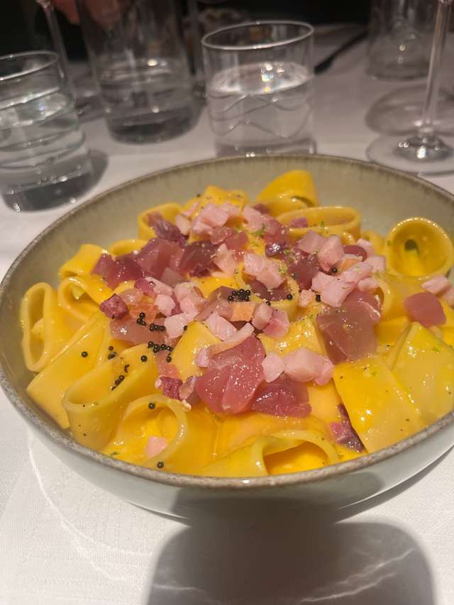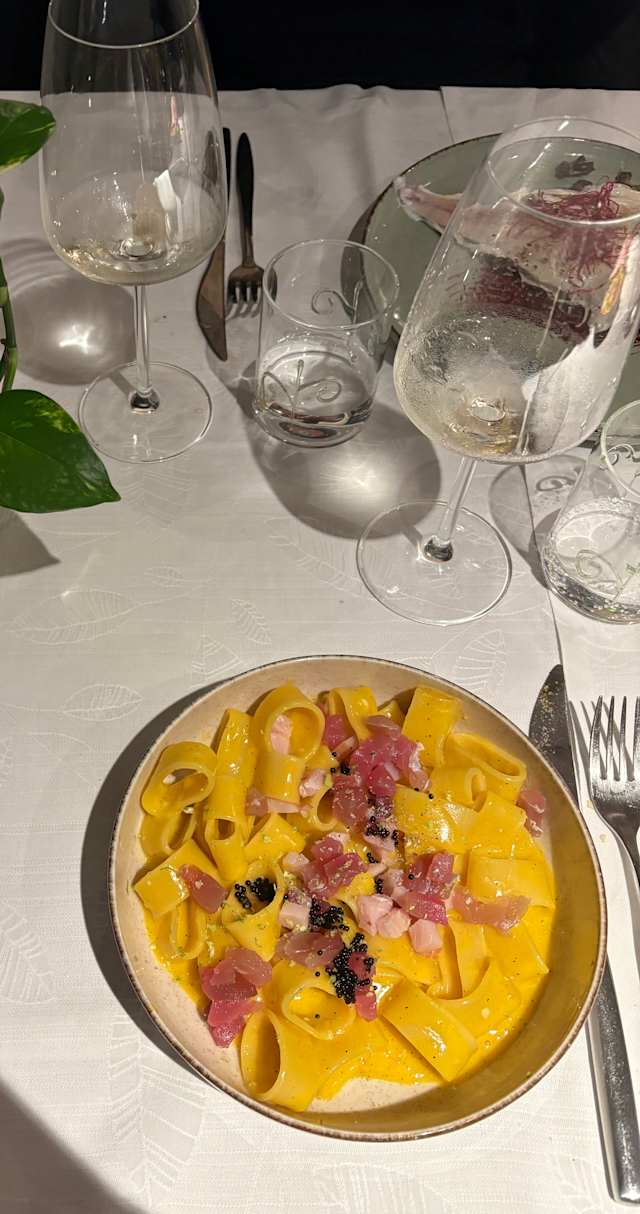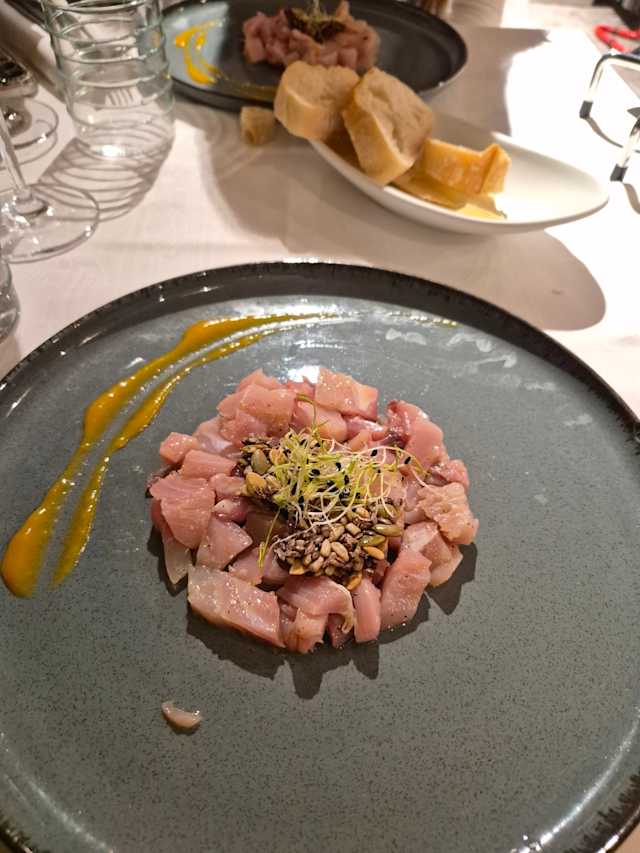 7.5/10I made a reservation yesterday (50% off) and I was very disappointed. The service was very slow, we arrived at 7:55 and our starters arrived at 8:40. The food was amazing, everything we ordered was delicious. The only miss was at the patanegra dish, some pieces were dry and chewy, but overall we loved everything. But as I said service was slow and indifferent, we ordered the tartare di tonno to share because we wanted to try it and we were full at this point. the waitress just put the plate in front of my husband, came back with one fork and left before we had the chance to tell her that we need two forks, the plate is to share. My husband had to get up and take a second fork himself, as if the restaurant is self service. My husband told her as we were leaving that the food was amazing but the service was awful. They should really improve their customer service, I definitely don’t recommend even though the food is amazing and wouldn’t visit again.