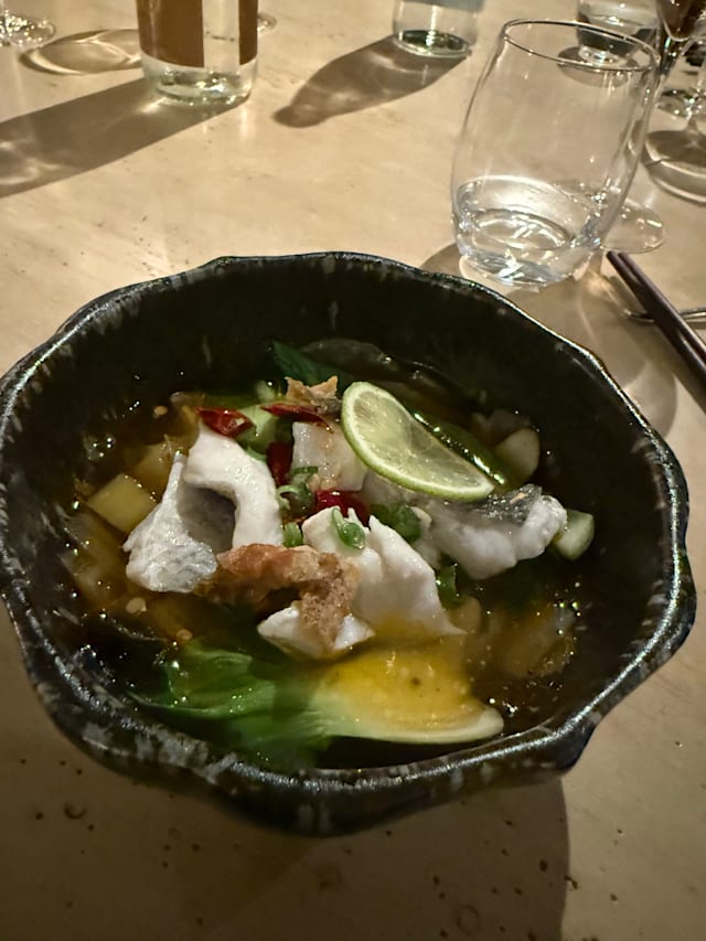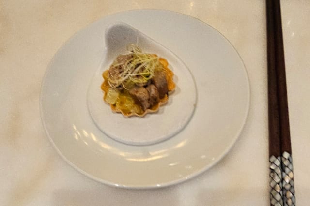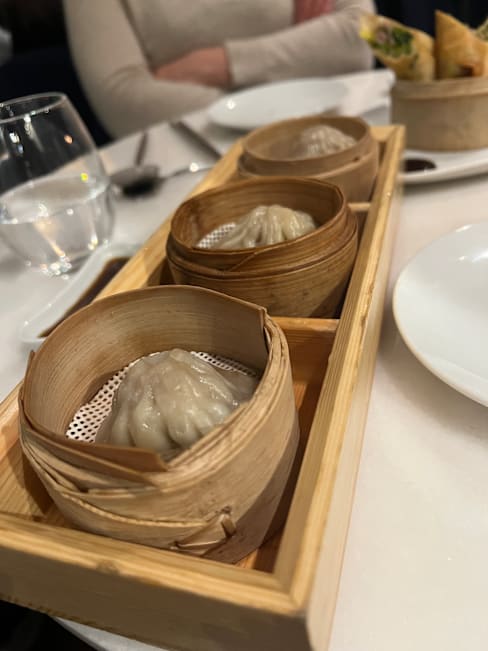 7.5/10We ordered the tasting menu with the wine pairing. It was not worth it. The food was pretty good, the xlb’s were fine, about average for what we get in San Francisco, but they were supposed to be the first course. They brought us the salad and then the sauce for the xlb’s and then the xlb’s, I wasn’t sure what to do. Then we sat for over a half hour, no food, no attention, empty glasses, and when they finally picked up the chop sticks I asked why and the waiter was surprised we hadn’t had our beef cheeks, which were very tender as they should be and quite tasty, a bit too much soy sauce for me. The sake and wine were excellent but overall, it was amateurish for the price. Would recommend sticking with a la carte and keeping service expectations low. Do not go for the tasting menu. They have no idea how to pull that off. We may have been the first people to ever try it.