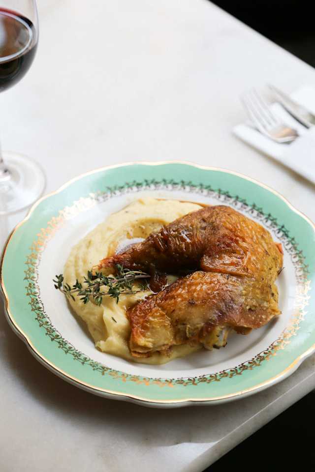 - Duck confit and new potatoes