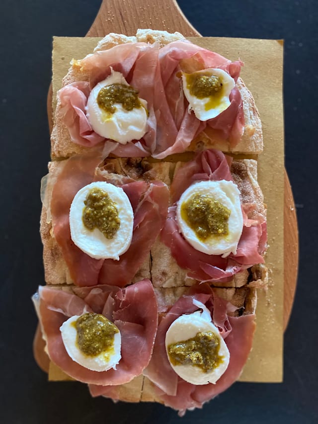 Bocconcino di bufala, pomodori, prosciutto crudo parma, basilico