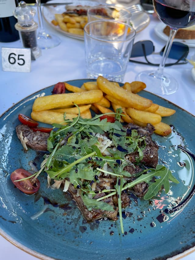 Ierse entrecôte met rucola,balsamico kerstomat & parmezaan