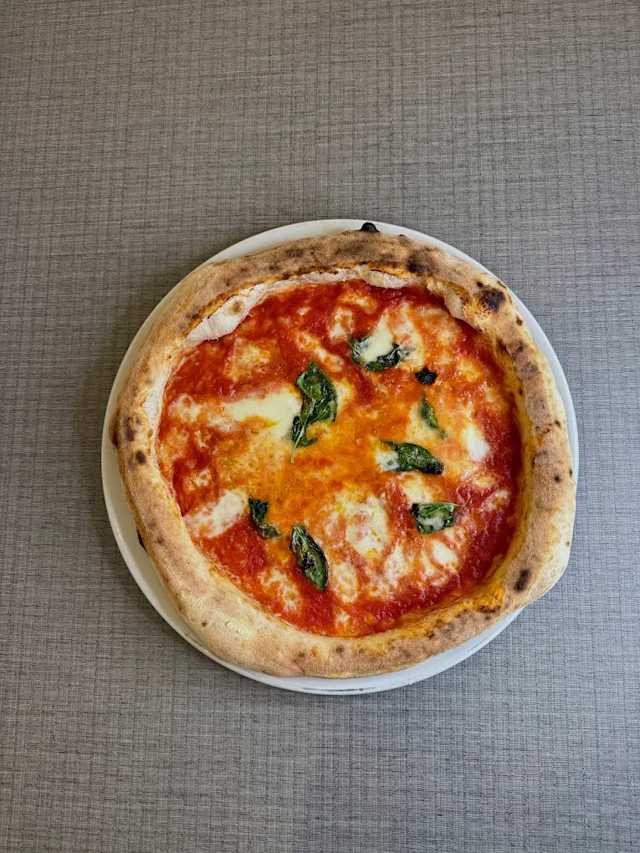 - Pomodoro san marzano, mozzarella fior di latte di agerola, prosciutto crudo, porcini, zola, basilico, olio evo