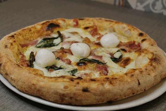 - Uova, pancetta, pepe e pecorino sardo, fior di latte di agerola