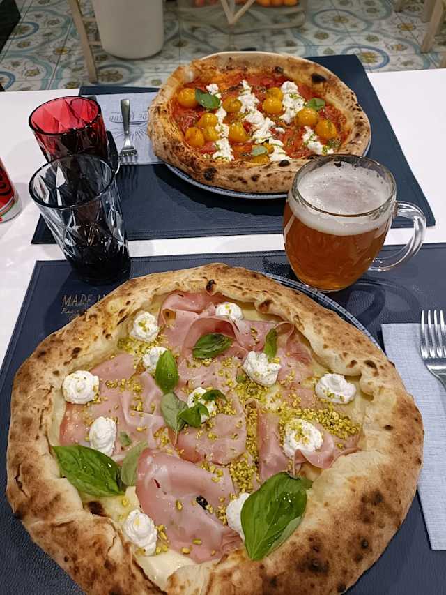 - Pomodoro, fior di latte di agerola, zucchine grigliate, spianata piccante calabra e taleggio DOP