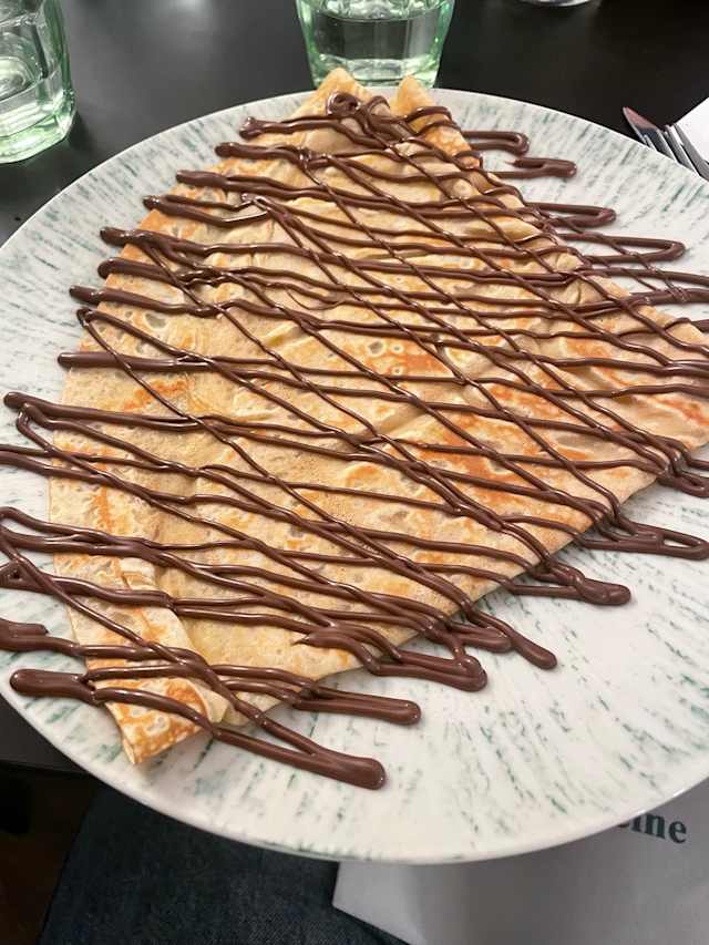 - Poire caramélisée, chocolat noir maison et glace vanille