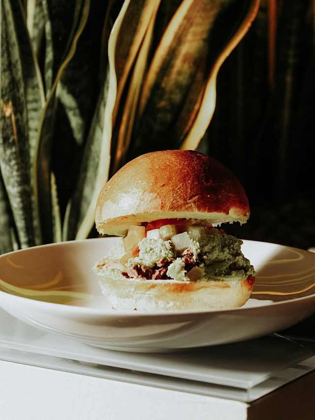 - Panino cotto al vapore ripieno con zucchine, porro, carote, saltate in padella in salsa teriyaki, mayo al limone e semi di sesamo