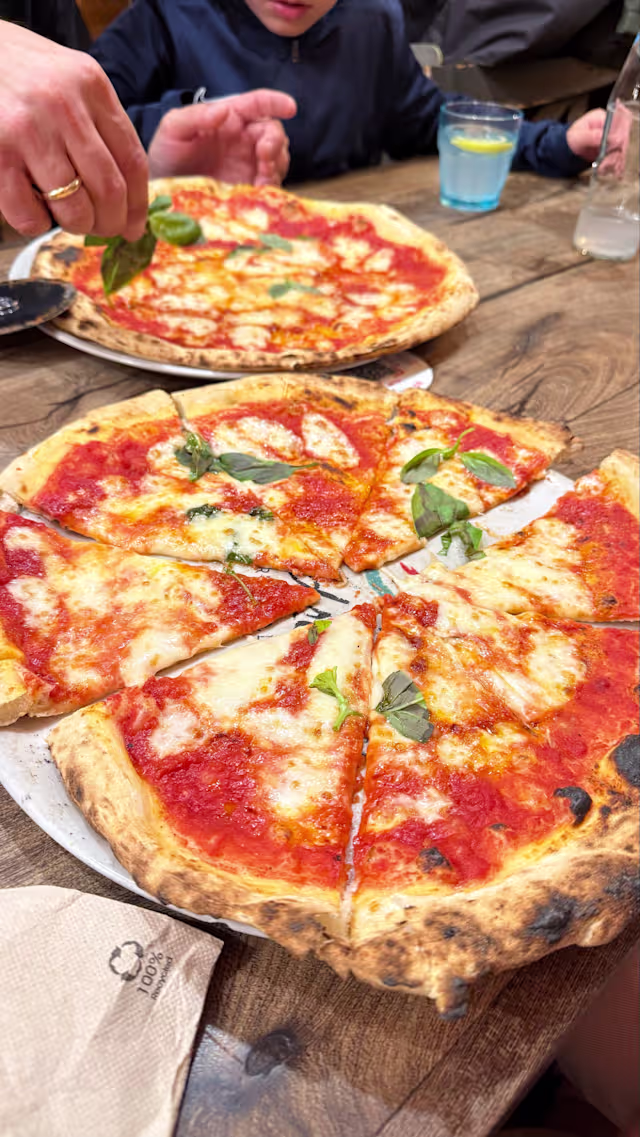 - Salsa de tomate san marzano DOP, queso mozzarella, salame picante, ‘nduja de spilinga, stracciatella y albahaca