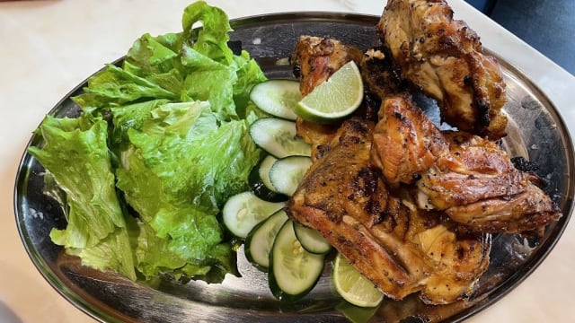 Grilled pork rib, chicken, beef, sausage with salad and home made fries with sauce