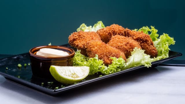 Mix fritti : 2 tex mex bites(verdure e formaggio) - cheddarstick - 2 mozzarella stick 2 nachos cheddar nuggets - 2 jalapeños e formaggio fritti serviti con salsa maeez piccante