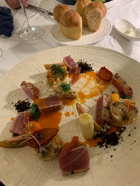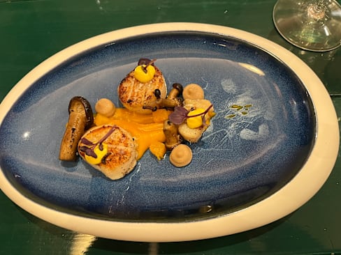 4/10Had been looking forward to this but was really disappointed. My starter of scallops was ok but my main (fish) was lukewarm when it arrived and had some unexplained (cold) blue stuff in the middle. My potatoes arrived after I’d finished my meal. The manager apologised and explained that both waiting and kitchen staff were inexperienced (and took something off the bill) but still very disappointing.