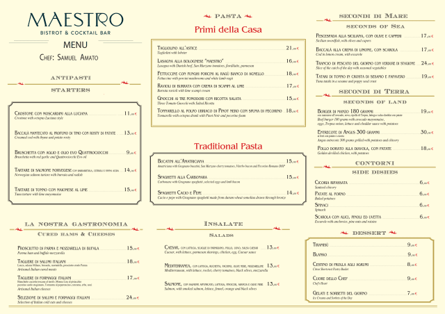 10/10We have had the most amazing night at Maestro - our best evening in Rome. The food quality was superb, as were the cocktails. To complete the experience the service was exceptional. Don't miss Maestro during your time in Rome!