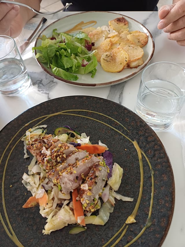 7/10Beautiful well designed ,modern restaurant. Very disappointed with the quality of food. We ordered seafood plater and roasted vegetables. Everything was hardly warm,. We’ve got feeling it was cooked/grilled sometimes before not even warmed enough. Wine in a decanter was off. Wouldn’t go again