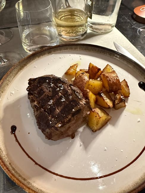9.5/10spontaneous last friday i decided to take my husband and try this place for the first time (thanks to newsletter this app sends me regularly with recommendations!) everything was excellent. from decor, ambience, food and service. specially noteworthy are their house red wine, fried artichoke, lamb skewer and ribeye polish style are just exceptional! we live on the viale so rarely venture out to this corner of the city at night. but so glad we did tonight. and thanks to Fork app too. now we have another option for fine dining!