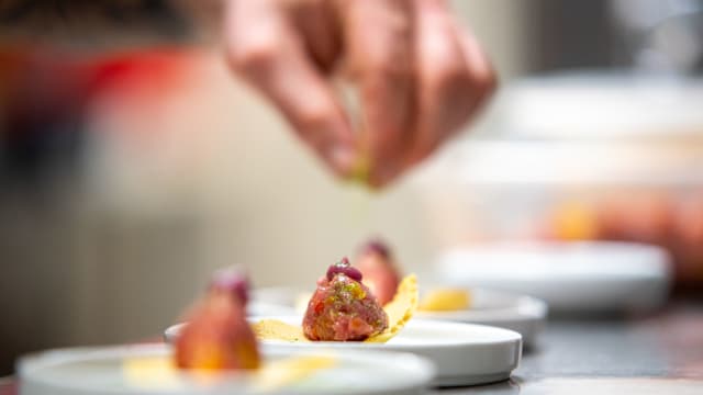 Explore the chef's selection menus with diverse dishes at fixed prices. Some are bookable via TheFork, while others are available onsite.