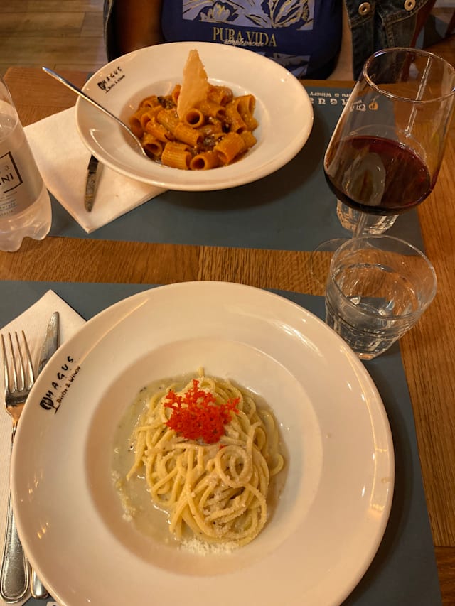 9.5/10No issue with booking, friendly staff. Lovely seat in outside covered area. Reasonable prices for rome. Food was lovely, I had carbonara, boyfriend mushroom risotto with added chicken.
