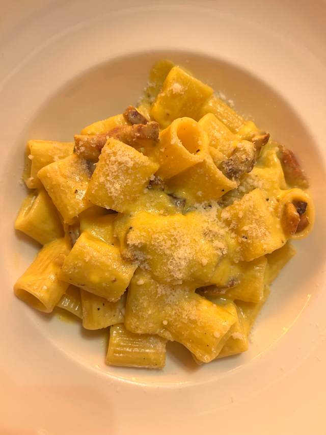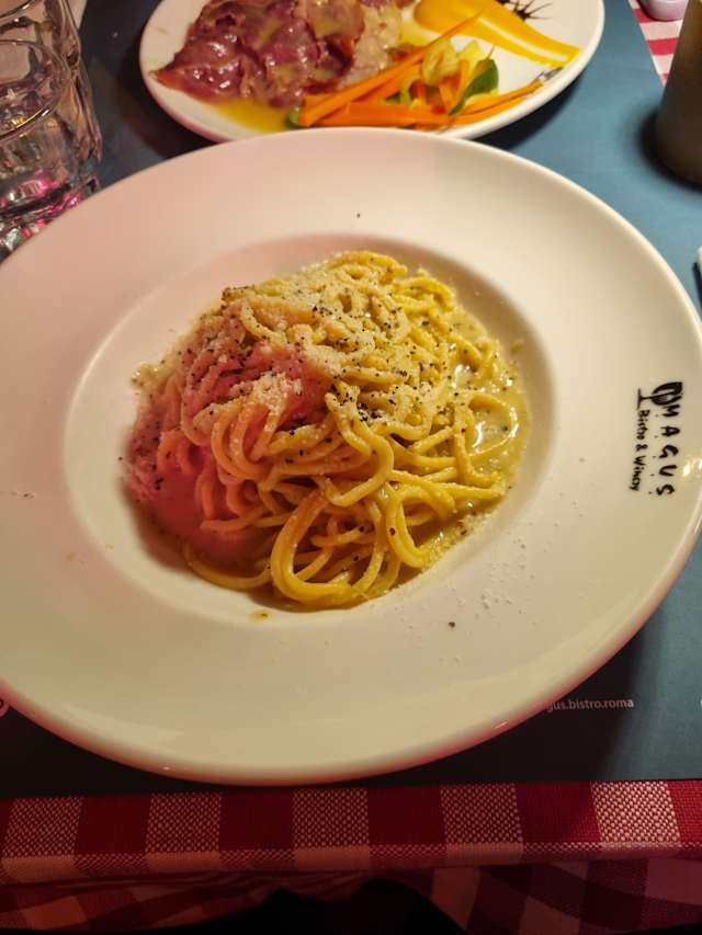9.5/10No issue with booking, friendly staff. Lovely seat in outside covered area. Reasonable prices for rome. Food was lovely, I had carbonara, boyfriend mushroom risotto with added chicken.