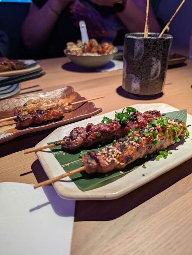10/10a fun little shop. at first we didnt know what to expect, but the yakitori was delicious. it became clear that you go here with friends, have drinks while you enjoy the snacks and hiphopmusic. the restaurants esthetic looks great and my husband was thoroughly impressed. we will be back here.