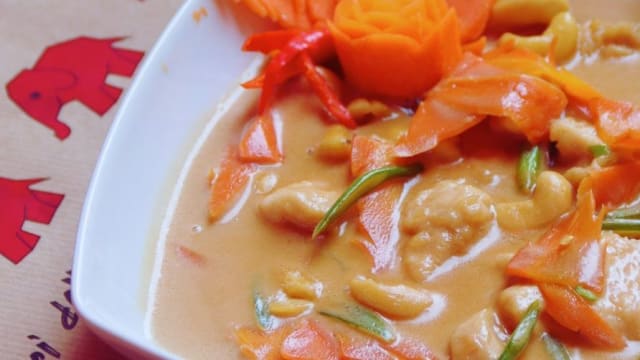Carote baby corn patate curry rosso latte di cocco fagiolini lunghi foglie di kaffir basilico thai peperoni zucchine salsa vegetariana succo di lime
