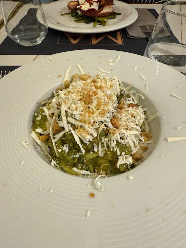 - Cime in doppia consistenza, salsiccia croccante, ricotta forte e tarallo pugliese sbriciolato