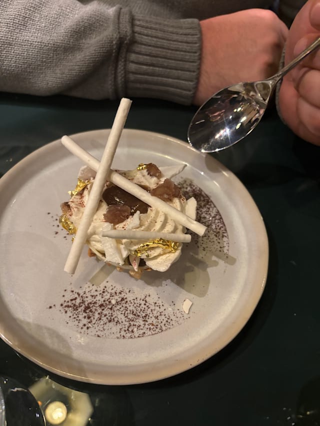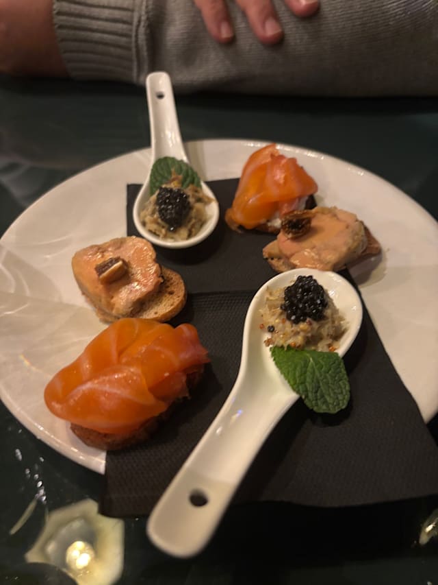 9/10The service was attentive and pleasant. We had the "menu carte blanche", which was two starters, two plats and a dessert. One of the starters was a half-cooked egg in a bowl with some sweet fruit and nuts mixed in - this felt like something one might have for breakfast and was a bit odd. The mains were an excellent fish and a rather uninspired bit of chicken (half a breast). Overall a nice evening and tasty, enjoyable food but nothing that would stand out.