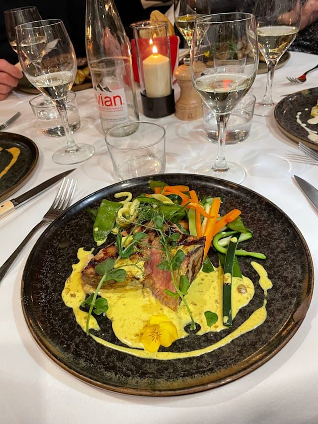 7.5/10I thought the food was very good -- I had hake which is a fish. My husband liked his steak. I just felt the blonde woman who greeted us was not as welcoming as most hosts we have encountered at restaurants. She didn't smile and kept hitting my foot as she brushed through the place serving and greeting. The gentleman, however, was lovely. It was also the most expensive meal we had here. I'm not sure I would return, .mostly because because we didn't feel a warmth and the price was too high for what it was.