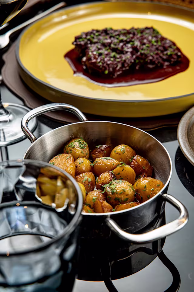 - Filet de boeuf, sauce au poivre noir du Sarawak, pommes de terre grenaille