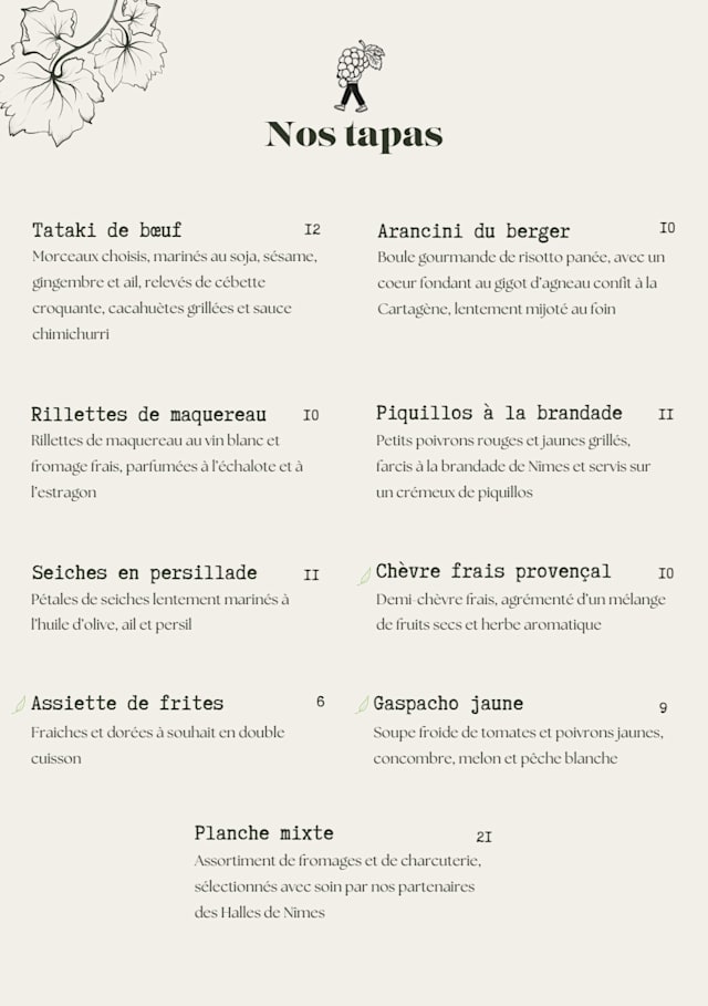 MediterraneanTraditional cuisineTapasBirthdayGood for a business lunchLunchOutdoor diningSeminarTraditionalWine barWith friendsGluten freeNut allergiesPeanut allergyVegan dishesVegetarian dishesCellarDog-FriendlyWheelchair Accessible