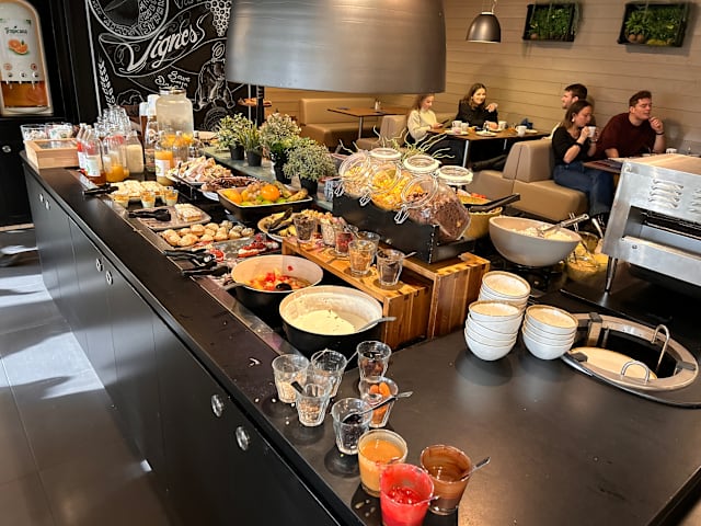 10/10We get a convenient and pleasant lunch in a quiet and lovely atomosphere. The -40% discount of la forchette (if it is still available) applies to duo and trio buffet.
