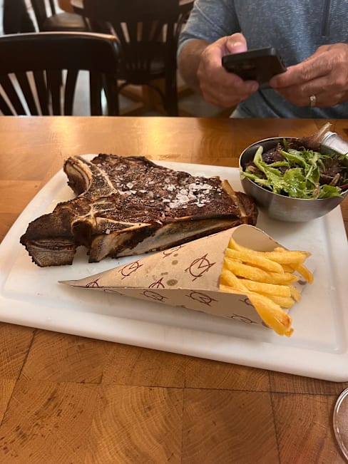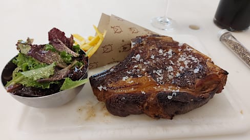 10/10Excellent quality product (price / quality) Chuleton. Outstanding service. The place is simple and no fuss with high quality food. There are no frills in the place, they have intentionally ommited them you pay for quality meat.