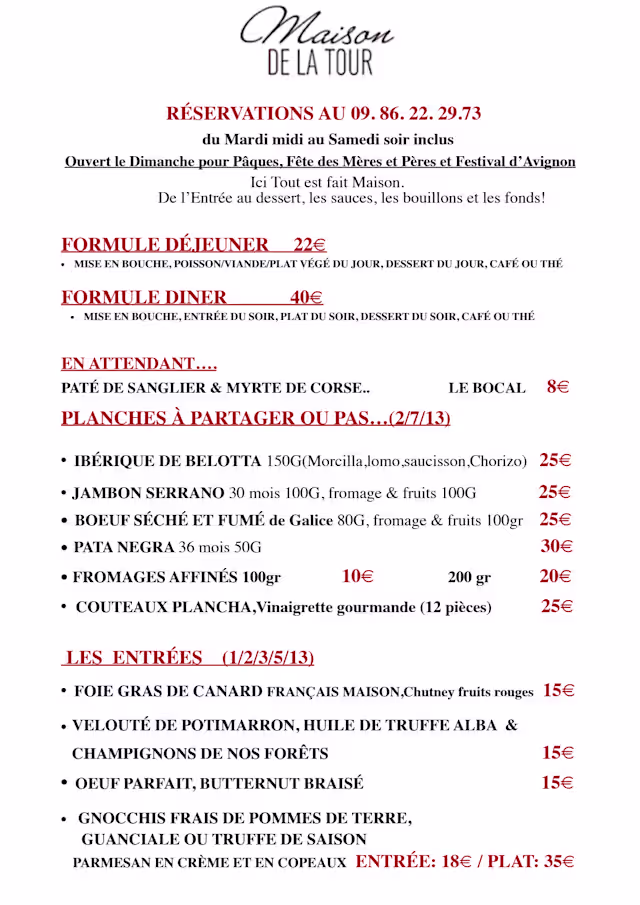 Maison De La Tour is my favorite restaurant in Avignon. The aesthetic of both the food and the decor is artistic and sophisticated, without being pretentious. The preponderance of theater posters and props gives it a whimsical, joyful vibe. Highly recommended. 😊