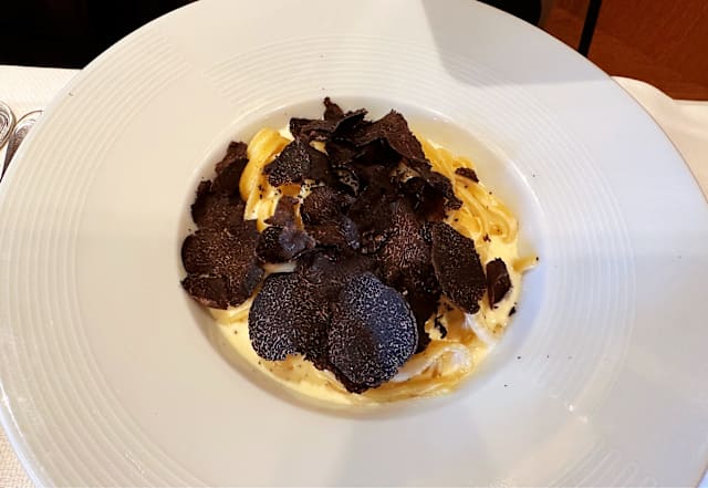 7.5/10The food was excellent, and the room had a calm and tasteful atmosphere. I loved the risotto of truffle. The fettuccine of truffle was also my favorite. However, the service was disappointing. We arrived at the restaurant at 7:00 pm on time for our appointment. At the entrance, we noticed that there were several staff members present. However, none of them acknowledged us or gave us a proper welcome. It seemed as though we were being ignored. If there were some reasons, they should have told us and asked us to wait for a while.