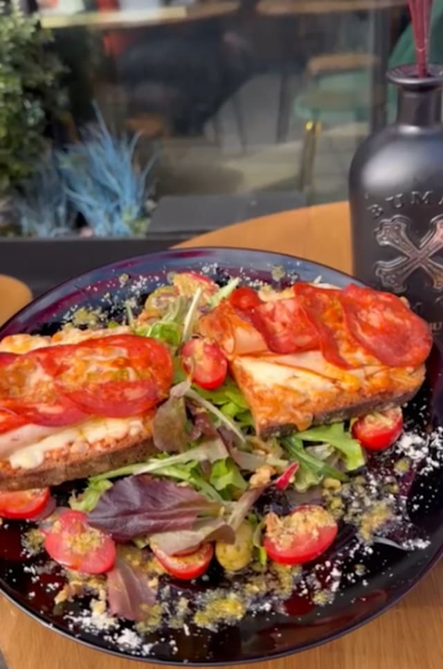 - Meli-melo de salades, tomates, toast pain de campagne avec son pesto rosso et confiture de figue, fromoge fondue et une généreuse tranche de chèvrе au miel