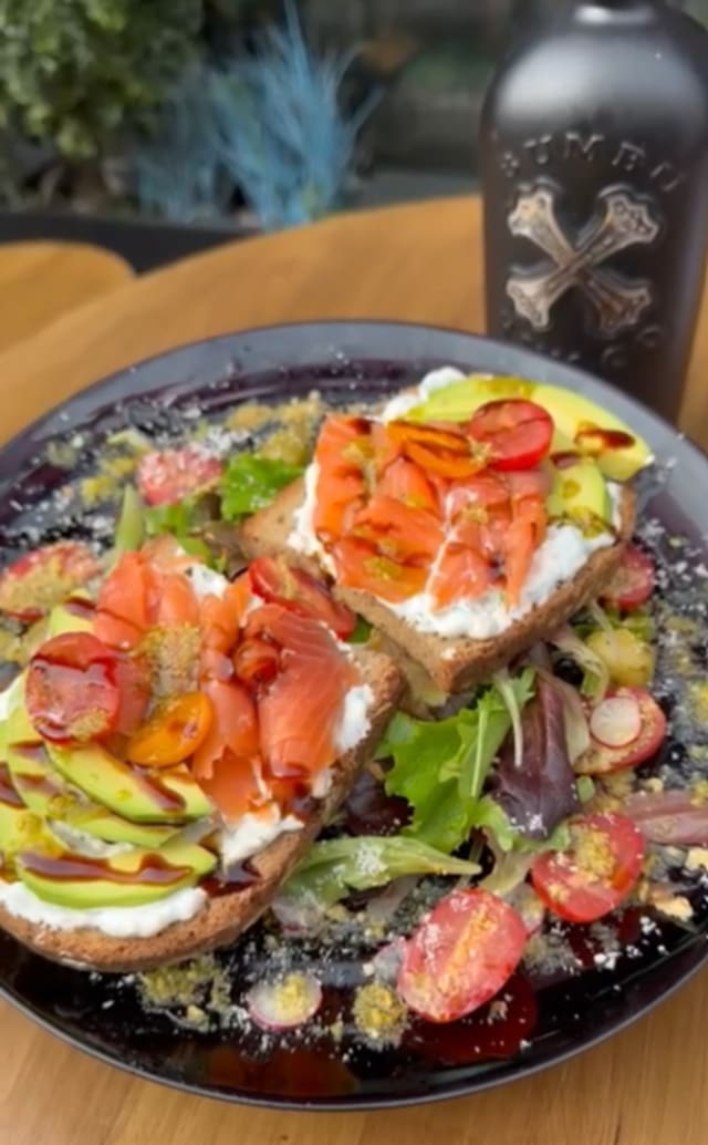 - Méli-melo de salades, tomates, toast pain de campagne avec une crème a la persillode du sud, généreuse tranche de soumon et ovocat