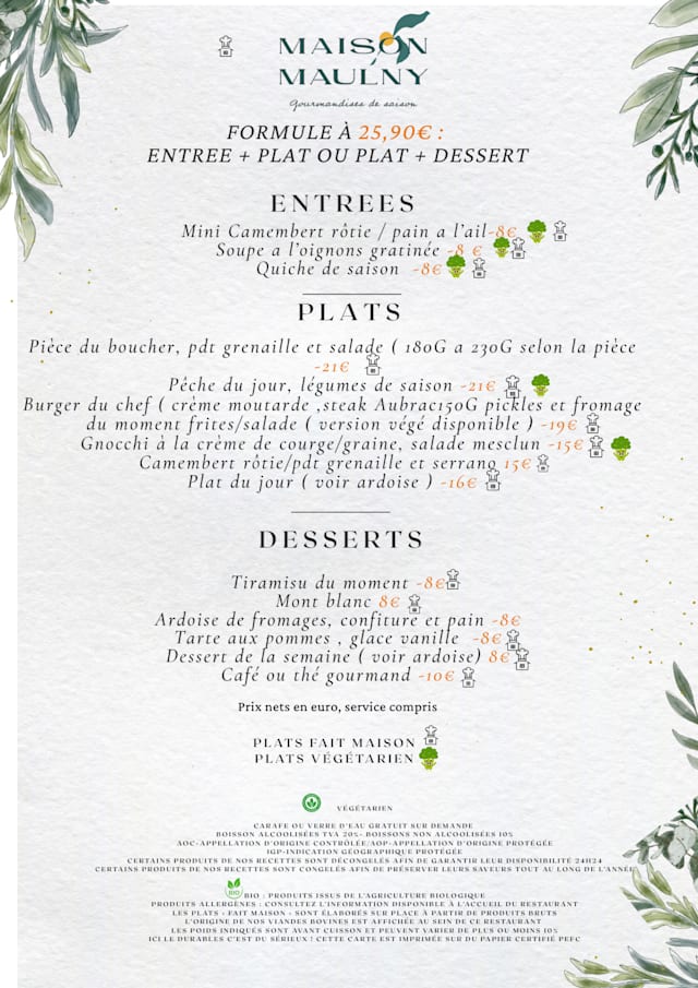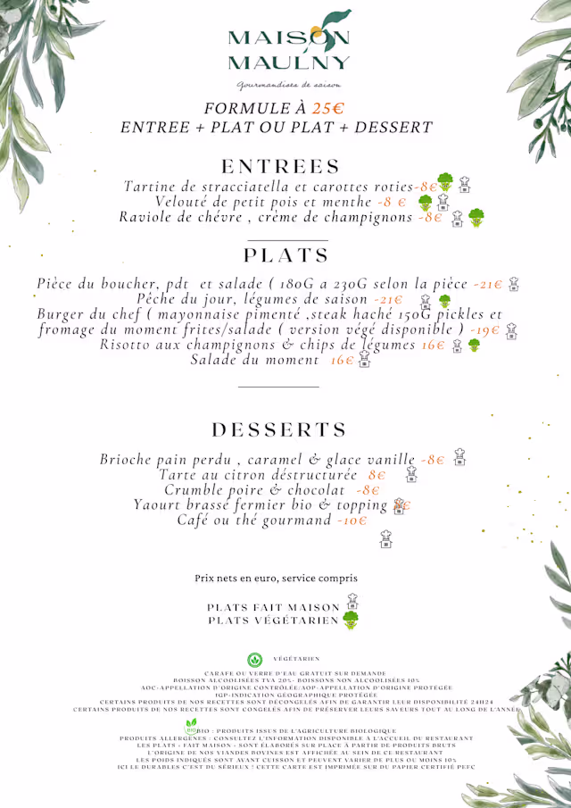 Entre nostalgie, bistro d'antan et décoration végétale, savourez les recettes de grands-mères revisitées par le chef de la Maison Maulny. Notre restaurant à Bezons rend hommage à la cuisine française et aux produits du terroir, twistés avec modernité.