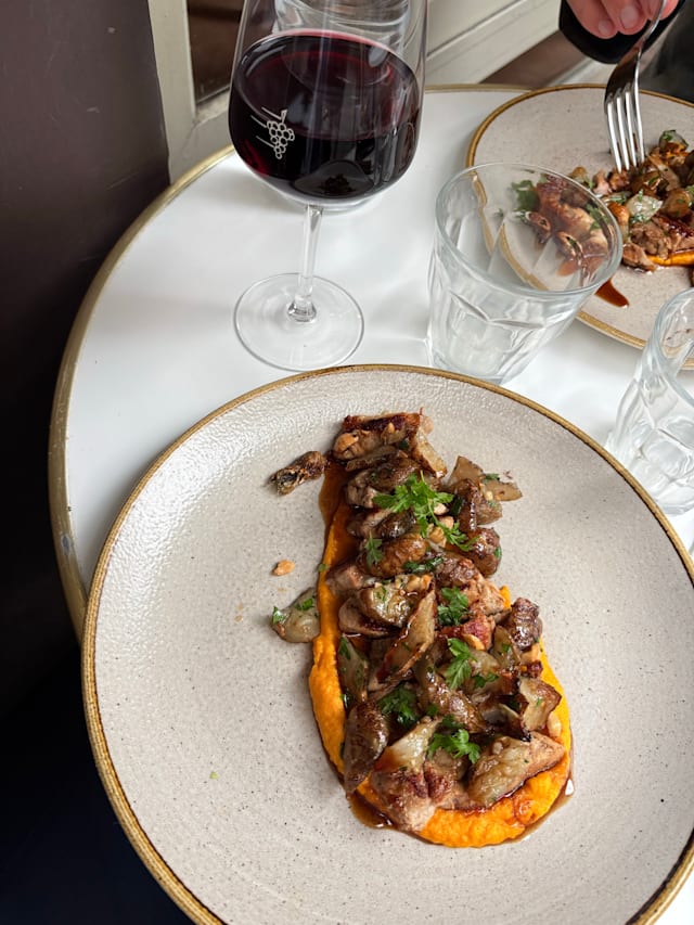 3/10This was such a disappointment. A chef may have put this menu together at some point, but they appear to have left the building. There's something about 'Portobello' as opposed to just - big flat mushroom, which conjures up warm juiciness. No. Fresh from the fridge about 30seconds after I ordered, slathered in a mountain of what looked like and had the temperature of snow. Nothing can give off any flavour at these temperatures. The bread was stale. Then came one of the most unpleasant things I've ever eaten, and it was in the other hand of the waiter who pounced to remove my first course. Someone behind that wall is a dab hand with a freezer and a microwave. "Fregola Sarda with mussels, cockles, dill-parsley marine emulsion". I was hungry so I picked out and ate the 9 small mussels. The 'emulsion' looked and had the aroma of something that lingered on a holiday beach when the tide recedes. The waiter made no acknowledgment of the fact that I'd hardly eaten as he removed my plate.