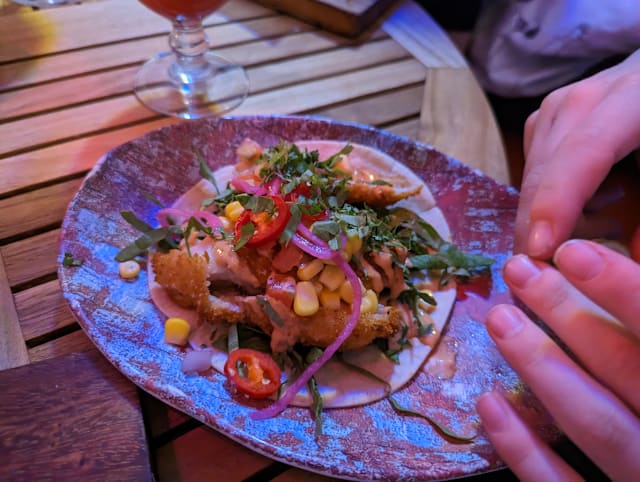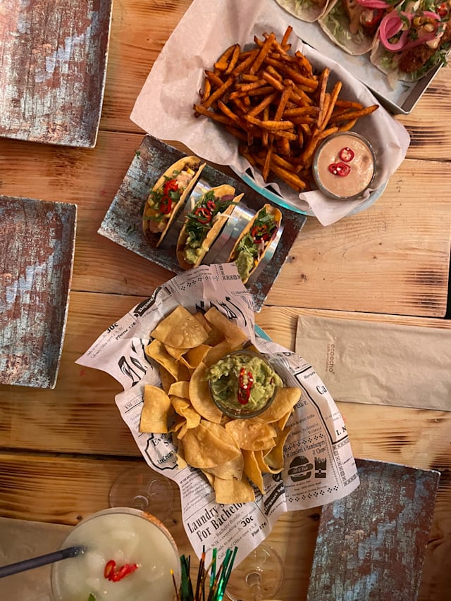 8.5/10Spacious venue with seating inside and out. Friendly and helpful multilingual staff. A good range of food options and cocktails/drinks. The food (tacos and sweet potato fries) was decent. Highlight (out of the fish, mushroom, beef and pork) was probably the pork