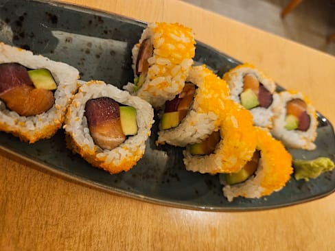 7/10Food was delicious and some unique combinations. The fish was so fresh and colorful. Service was average and the ambience was below average.