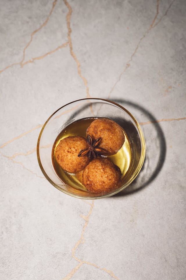 La bomba dulce que viene de bombay: bolitas fritas de leche, empapadas en almíbar de cardamomo y azafrán