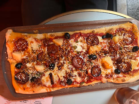 9/10American style pizza with mainly Italian ingredients. They offer pizzas with some twists, like pineapple pizza, for example. You can either choose from ready to go compose your pizza! There is no limited choices of toppings for only €14.50! The service is fast, and the staff is quite friendly.
