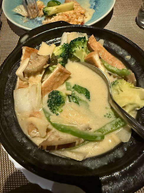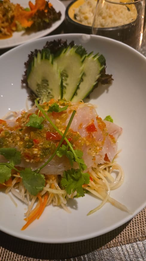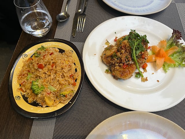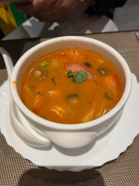 8/10+2Makham Thai Restaurant offers an excellent dining experience with authentic Thai food that truly captures the vibrant flavors of Thailand. The dishes are impressive, with remarkable taste profiles that transport you straight to Thailand. However, it would be great to see more vegetarian options on the menu to cater to diverse preferences. The staff are very accommodating and provide attentive service, which enhances the overall experience. The wine selection is fantastic, allowing for a great pairing with the flavorful dishes. The Tom Yum soup was delightful, although I found it a bit on the sweet side and would have preferred a touch more spice. The papaya salad stood out as exceptional, with a well-balanced flavor profile; a little more heat would have elevated it even further. For mains, the Thai Green Curry was bursting with flavors, and the Basil Fried Rice complemented it perfectly. Overall, Makham Thai is a great place in Paris for anyone craving Thai cuisine.