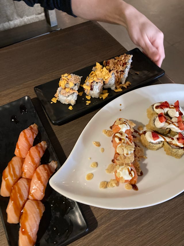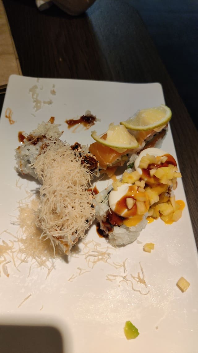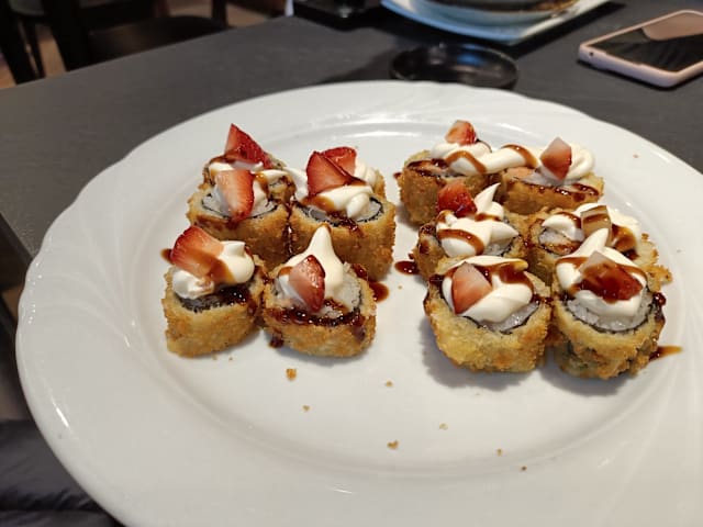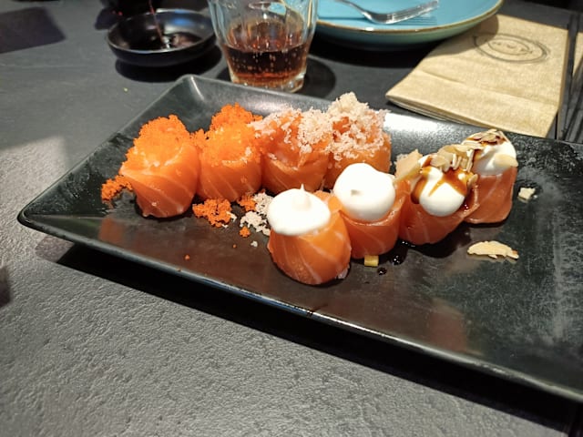 6.5/10Honestly i was expecting more. Makis were okay but i guess fusion still needs its own taste and most uramakis were a bit neutral. In fact, the traditional hosomaki were very tasty and better than them. Unagi nigiri also quite disappointing. No wasabi served, also rather strange. Lots of people and nice atmosphere, yes, but i think personally that they still have to find their way.