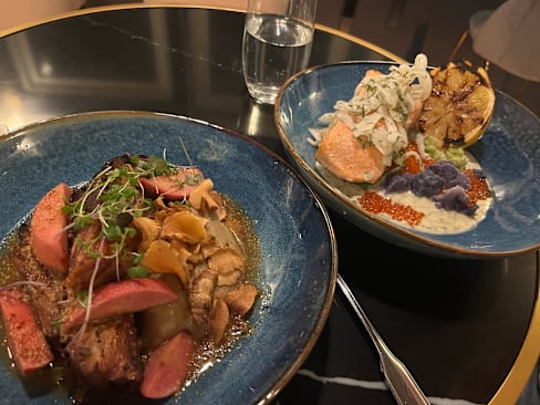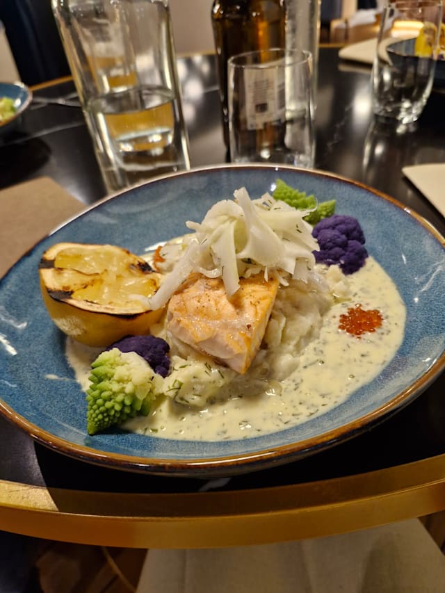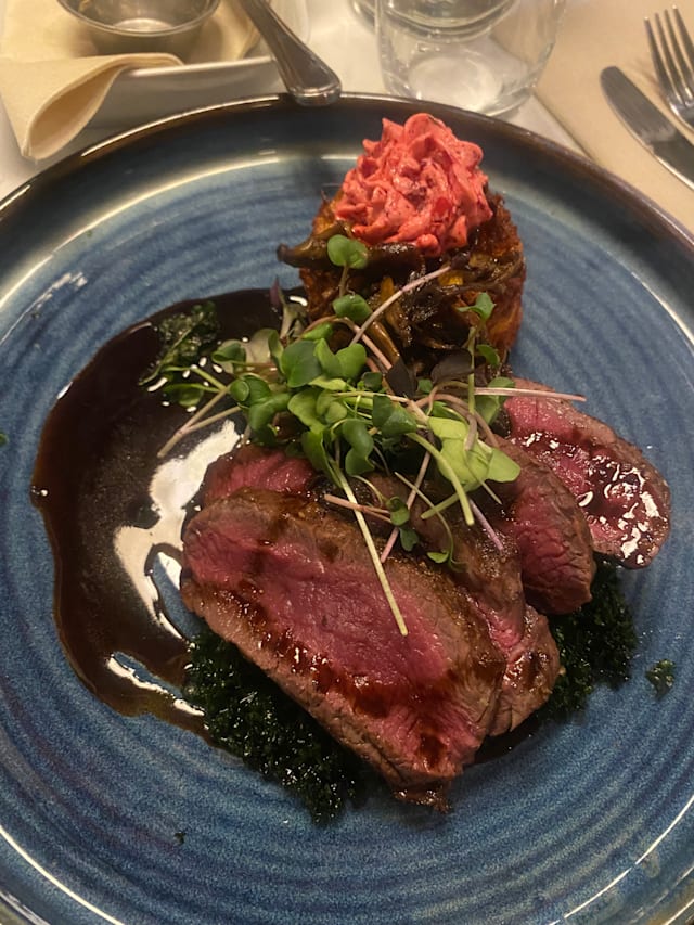 8/10Stunning setting on a moored boat off the shoreline of Gamla Stan looking onto the historical skyline of Sodermalm. You could not ask for better view. The food presented was delicious and service friendly and attentive. However due to staff shortages we waited around 45 mins between starter and main and this deterred us from ordering dessert.