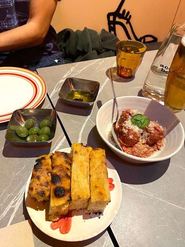 7.5/10the food was delicious, particularly the Meatballs with Ndjua and the Veal Carpaccio. it's a very central location for bars, etc. it's on the smaller side, would recommend bookinf a table to avoid disappointment. Service could've been a little better, there was no service with a smile. Overall the food and location was really good